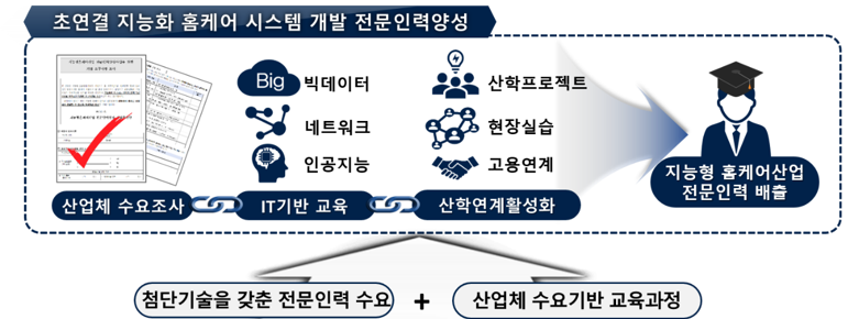 또한 지능형 홈케어 관련 산업체의 수요에 부응하는 실험/실습 교과목을 운영하고 참여기관 간의 상호협력 및 현장 수요에 맞는 현장실습 프로그램을 개발하여 운영합니다.